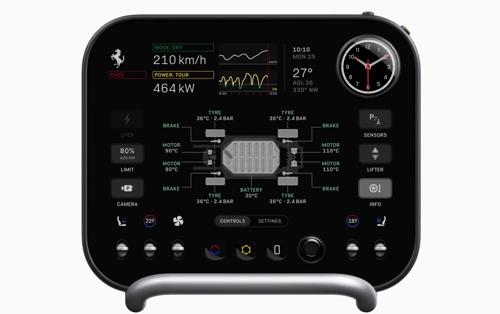 Ayrıca sürüş deneyimi, Corning Fusion 5 camından üretilen özel bir anahtarın konsola yerleştirilmesi ve havacılık stili fiziksel kolların çekilmesi aracı bir tür uçak kokpiti görünümüne dönüştürüyor.